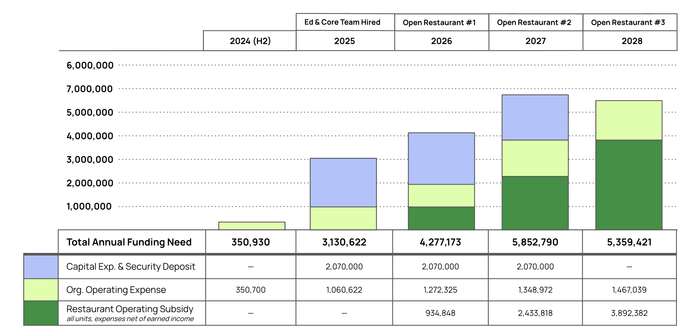 Begin major funding campaign for first three restaurants.